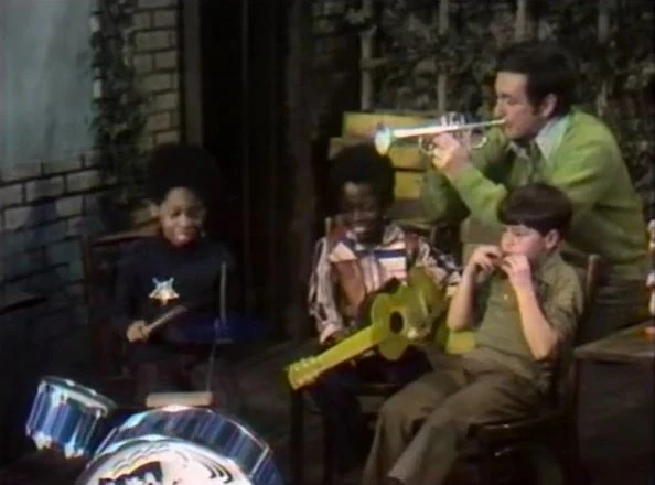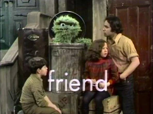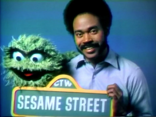 CLOSING SIGNS | Gordon and Oscar hold the Sesame Street sign while Bob holds the Children's Television Workshop sign. |