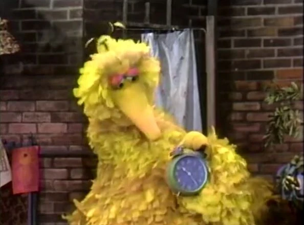 SCENE 5 | Big Bird's alarm clock rings, signaling it's rhyme time. He recites a poem titled "Babies" about how babies are different from grown-ups. Verses include: "...You can't play baseball with 'em / Or share a soda pop / And sometimes when they start to cry / You think they'll never stop." |