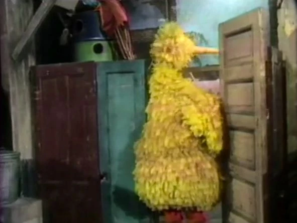 SCENE 9 | Susan thanks Michael for visiting again as Big Bird enters, still going backwards (and getting caught on the doorway) and saying hello. Susan suggests the viewer join them some other time and hopefully Big Bird will be straightened out. Gordon announces the sponsors, and the credits follow. |