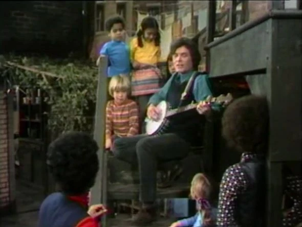 SCENE 3 | Big Bird makes a request for "Boatly, Boatly, Boat Your Row," which Gordon interprets as "Row, Row, Row Your Boat" which he, Michael, and the kids sing correctly. Big Bird still can't seem to do it forward, so Gordon suggests a talk with him at the playground. Michael continues the song with the kids as a round. |