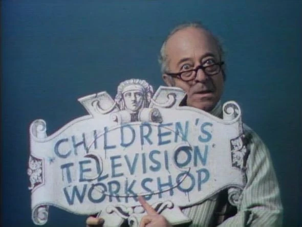 CLOSING SIGNS | Bert and Ernie hold the Sesame Street sign, while Mr. Hooper holds the Children's Television Workshop sign. |