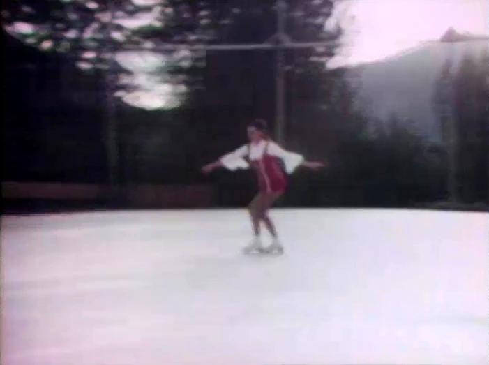 Celebrity | Peggy Fleming skates slowly around the rink. |