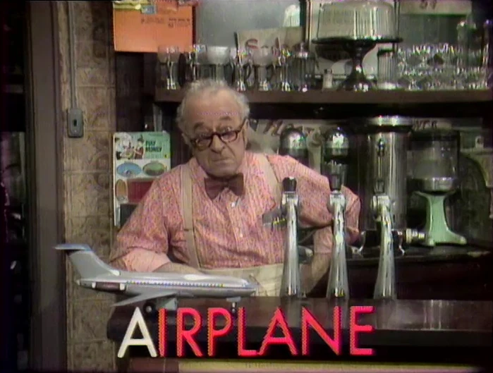 SCENE 5 | Mr. Hooper presents an A word - airplane. His toy plane flies off on its own. |
