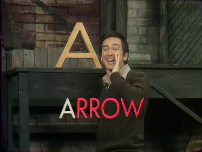 Cartoon | A man displays the capital and lowercase A, and explains what an alligator is. (First: Episode 0006) |