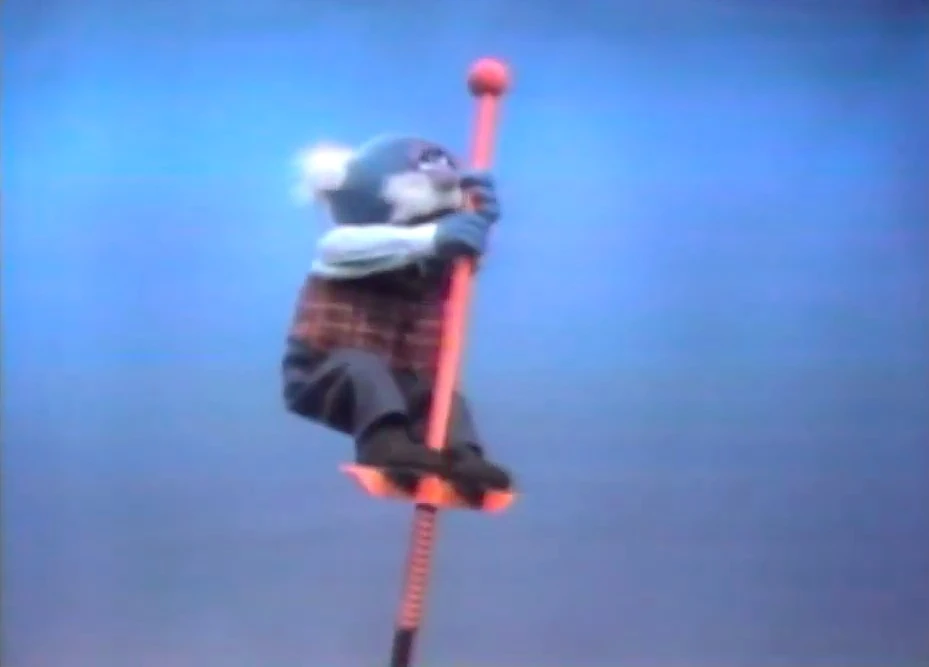 Muppets | Professor Hastings uses a pogo stick to demonstrate "up" and "down", and ends up jumping into a pond. (First: Episode 0216) |