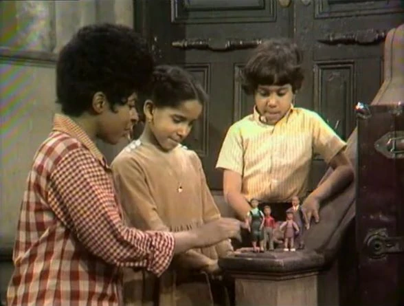 SCENE 6 | Susan has a family of dolls. She learns from Caridad that mama and papa mean the same thing in English and Spanish. They then comment over a film of a baby reindeer (First: Episode 0003). |