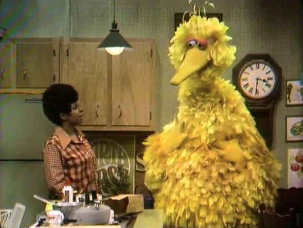 SCENE 4 | Big Bird delivers Susan her groceries from Hooper's Store. He describes the many unfortunate things that happened to him in the process, such as having the wrong bag, getting lost, and tripping up the stairs of 123 Sesame Street. These events almost made him mad, but in the time needed to correct the mistake, he didn't have time to be angry. Now that he has the time, he starts ranting and raving. |