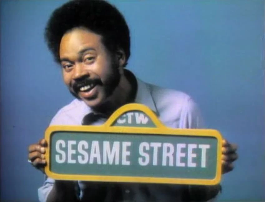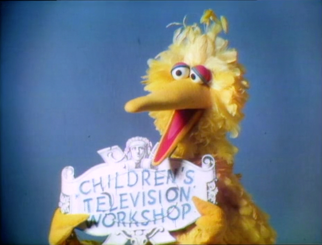 CLOSING SIGNS | Gordon holds the Sesame Street sign, while Big Bird holds the CTW sign. |