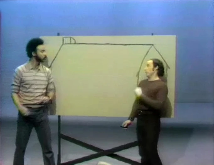 Cartoon | As voices speculate what a squiggle will become, the squiggle is joined by other lines and bumps, eventually forming into a talking picture of Big Bird. (First: Episode 0235) |
