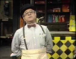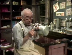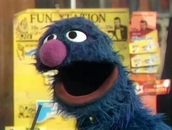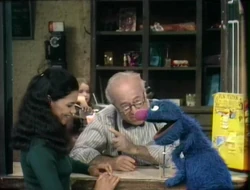 SCENE 3 | Mr. Hooper serves Grover a soda at Hooper's Store, when Maria stops by. She meets Grover for the first time and the monster is immediately struck by her beauty. Eager to impress his new crush, he attempts to get her the glass of water, pencils and pad she needs, but Mr. Hooper already has those things handy. Grover does, however, get to deliver the items to her. |