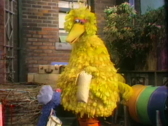 SCENE 2 | Grover delivers a letter to Big Bird and realizes how easy it was to do. However, Big Bird usually has a package for Molly to pick up, so he asks Grover if he'll take it. For Big Bird, it's a small sack of bird seed, but for Grover it's rather heavy, and he struggles to carry it away. |