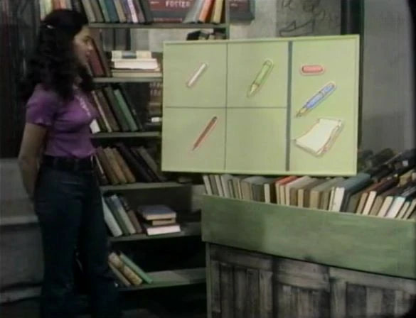 Maria sings "Here Are Some Things" in Spanish, this time with drawings of writing implements. |