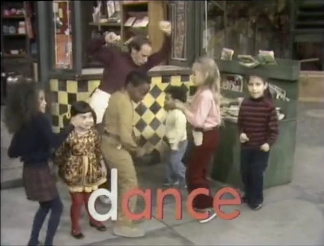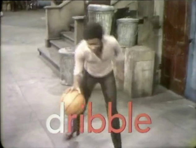 SCENE 6 | To demonstrate the letter d, David shows that d is for dribble, Oscar shows that d is for dust, and Tom and the kids show that d is for dance. |