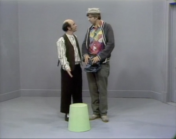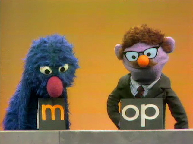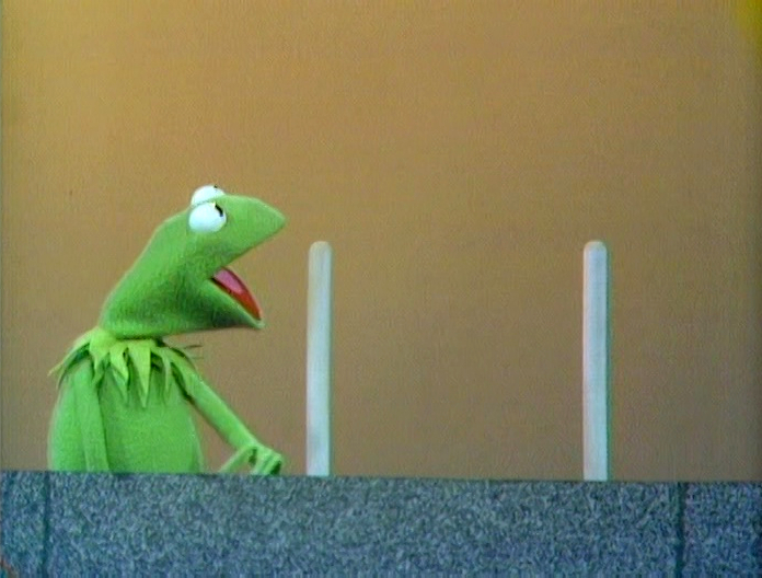 Muppets | Kermit Lecture: Between the Posts — Kermit attempts to demonstrate between with two poles, which are actually mops held by Grover and Herry. (First: Episode 0283) |