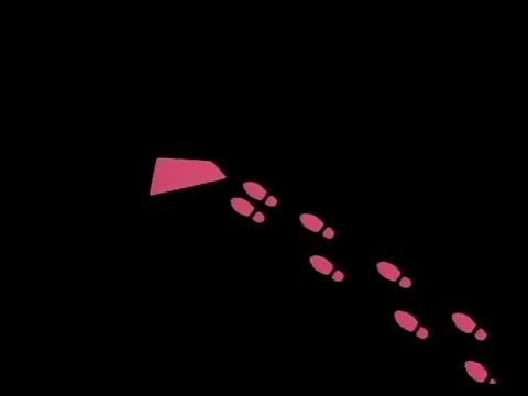 Film | Tracks from a race car cross paths until most of the screen is blank. A pair of foot prints crosses the screen to blank out the last bit. (First: Episode 0105) |