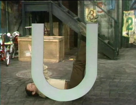 SCENE 5 | Tom is back to show today's other letter, but once again, Bob and Rafael were unable to procure a physical copy for him. Tom lays on the ground and uses his arms and legs to make the shape of the letter U. |