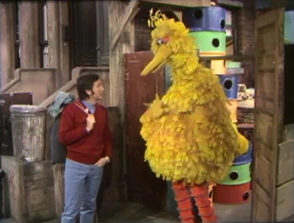 SCENE 1 | After having cleaned up his nest, Big Bird is bored because he has nothing to do. He asks everyone he meets if he can help them to do something, and they all decline his offer; Maria is heading off to the store with Shola and another kid, David rides by on his bicycle, and Bob is bringing some clothes to the laundromat. |