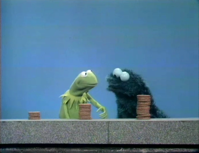 Muppets | Kermit Lecture: Some, More, Most Cookies — Kermit and Cookie Monster demonstrate the idea of "some, more, and most" using three piles of cookies. (First: Episode 0306) |