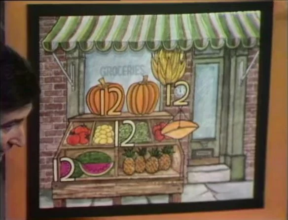 SCENE 3 | Bob has three kids look for number 12s in a picture of a grocery store. |