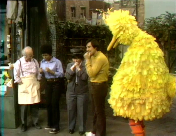 SCENE 6 | Mr. Hooper, Susan, Molly, Luis, and Big Bird play a rhyming game, but Big Bird can only come up with nonsensical rhyming words when it's his turn. |