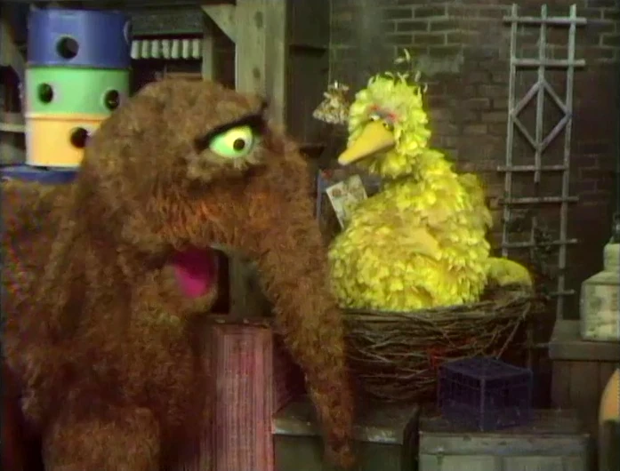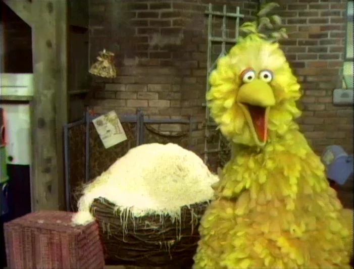 | Big Bird sets a spaghetti trap for Mr. Snuffleupagus | |||||||