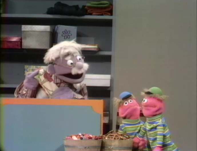 Muppets | The Busby Twins ask the storekeeper for a tie— so the man shows them some neckties. They finish the word, and the man figures out that they're asking for a tire. When he asks them what kind of bicycle they have, they answer, "a...bi-...cyc-...le-...built...for...two." |