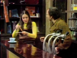 SCENE 5 | Tom shows Linda the door chime bell at Hooper's Store and wonders, how would he be able to mind the store if he was deaf? Linda shows him that he can feel the vibrations when someone stomps on the floor, and that customers can write down their orders. |