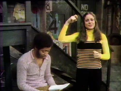 SCENE 10 | Tom explains to Linda how he used the train book to demonstrate beginning and end, and Linda shows him how to sign that it's now the "end of the day" and time to say "goodbye." Susan announces the sponsors. |