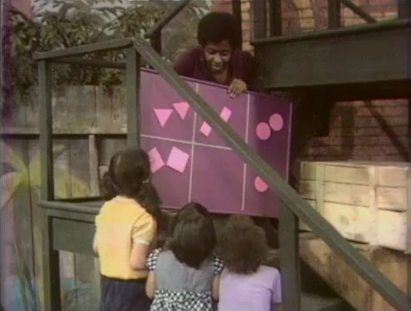 SCENE 5 | On the garage steps, David plays "Here Are Some Things" with the kids using groups of shapes. |