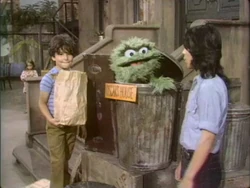 Oscar puts a sign on his can, which reads "Oscar's house." He gets trash thrown on him again, this time from a younger boy who's also new in the neighborhood, but can't read English words. Oscar asks Henry how to write "Oscar's house" in Spanish in preparation for another sign ... |