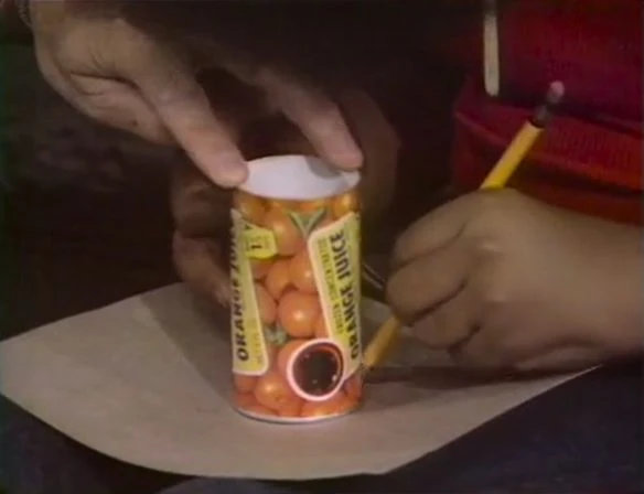 SCENE 2 | Bob is about to throw out his bag of various cans when he happens upon David and a couple of kids at Hooper's Store. They ask for a coffee can with a plastic top, and Reggie uses it as a drum to play music with the others. Near the yard, Susan asks for a can so she and a kid can put water in it to clean out their paintbrushes. Over on the stoop, Brynne uses an orange juice can to help trace a circle for a dollhouse table, and Gordon transplants his plant from a broken pot into Bob's last can. With only the bag left, he gives it to Ingrid to store her toy cars in. |