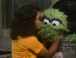 SCENE 5 | Oscar asks for Bob's help in reading a note on his trash can from Maria, which reads, “Thanks for helping me throw out the trash. I owe you un beso.” Oscar wants to know what “beso” means, but Bob hesitates to tell him, saying it's something that he'd think will make him feel yucchy. Oscar immediately wants the “beso” when given this news, so to his disgust Maria comes down and gives Oscar a big kiss. |