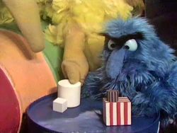Insert | Big Bird plays in his nest with a set of blocks that Roosevelt Franklin had gifted him. Herry Monster comes along and helps him sort them according to how they want to play with them. (First: Episode 0178) |