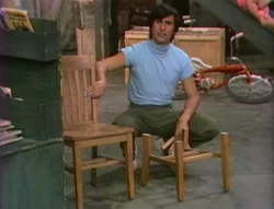 SCENE 6 | Luis is just about to eat his lunch out in the yard, but notices that one of the chairs is missing its seat and back part. He and David then notice that there are no wheels at the bottom of David’s shopping cart, and Bob points out that the rope is missing from the tire swing. They see that Big Bird has started his own taxi service, and wheels in a contraption that uses all of the missing items. The grown-ups tell him that he shouldn't take things that he believes were just lying around, and Big Bird offers David a ride to the supermarket. |