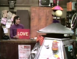 SCENE 2 | In the Fix-It Shop, Luis introduces Sam the Robot (Caroll Spinney) to the word "LOVE" and the concept of it. Since Sam is a machine, he is unable to have such a feeling...that is, until he lays his eyes on Gordon's toaster and falls madly in love with it. (YouTube) |
