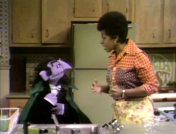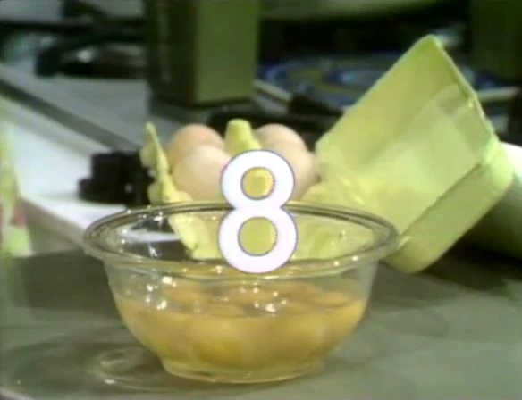 SCENE 1 | Susan welcomes the viewer from their home as she prepares for a dinner visit from Oscar and Kate. She's about to start making a cake in the kitchen when The Count appears, having finished counting her silverware. He's in need of something else to count, so Susan lets him count the 8 eggs she cracks open. |