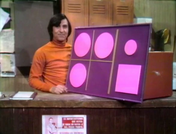 SCENE 4 | Luis plays a "Here Are Some Things" game at the Fix-it Shop. What goes with the three big circles: the big square or the small circle? |