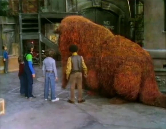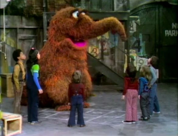 SCENE 6 | After trying to play hopscotch with the kids, Mr. Snuffleupagus leads them into a game they can all play: "Doin' the Snuffleupagus." |