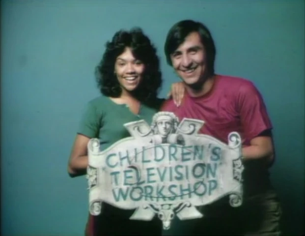 CLOSING SIGNS | Ernie and Bert hold the Sesame Street sign, and Maria and Luis hold the Children's Television Workshop sign. |