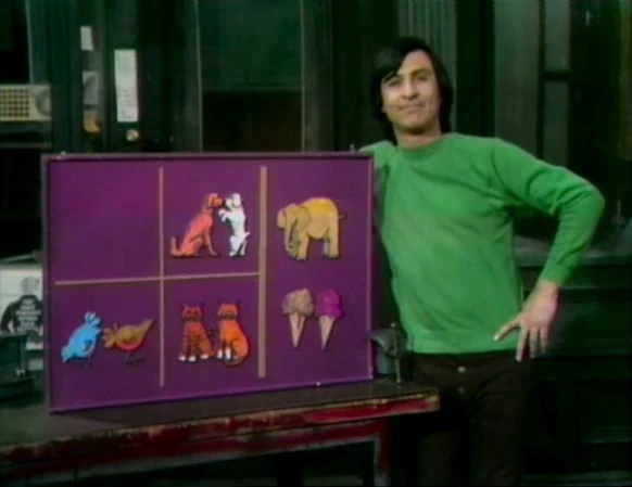 SCENE 6 | Luis sings "Here Are Some Things" in Spanish, sorting pictures of animals and ice cream cones. He shows how there can be more than one answer. |