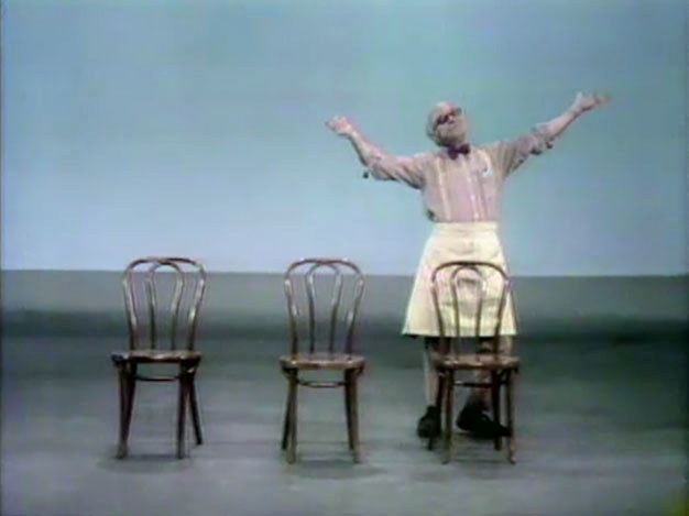 Cast | Mr. Hooper adds 3 chairs as a sportscaster narrates. (First: Episode 0288) |