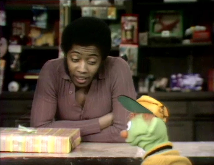 Muppets | Harvey Kneeslapper asks a man, "Do you know where I wanna be?" The man says he doesn't know. Harvey says, "I wanna B -- right here!" and slaps a letter B on the man's sweater. Harvey runs off, laughing. (First: Episode 0277) |