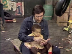 SCENE 1 | Big Bird joins Maria, Bob, and the kids for a game of hide-and-seek. Maria, designated as "it," sees Big Bird having trouble finding a spot he can convincingly hide (having tried hiding behind a tree, then a spoon provided by Oscar). Big Bird asks to be "it" instead, thinking he'll have better luck with the game. He counts to 10, but this puts him to sleep instead of going to look for everyone. The rest of the players simply let him nap, deciding to play the game in the yard. |