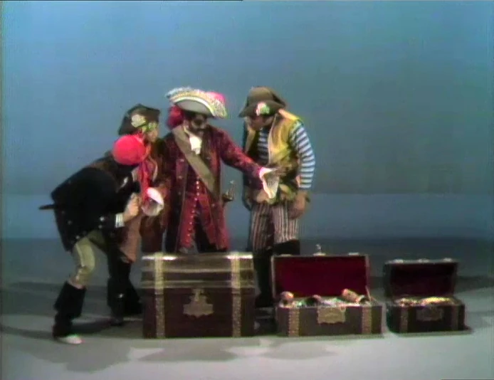 Cast | Captain Bligh (David) orders his crew (Luis, Maria, and Gordon) to bring him the biggest treasure chest, which is filled with rubber duckies. (First: Episode 0478) |