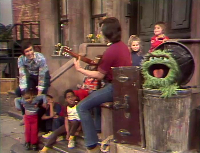 SCENE 5 | Bob and Luis (with guitar) sing "Sing"/"Canta." Oscar the Grouch chimes in, loudly singing "bah-bah" instead of "la-la." |