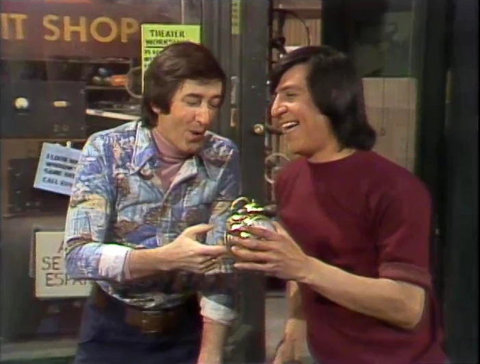 SCENE 1 | Simon Soundman goes to the Fix-It Shop and speaks to Luis about fixing his car. He communicates its failings with sound effects, Luis translates, and fixes the car. As he drives off, Bob arrives and expresses his amazement at Simon's sound effects. Luis says it's simple to him, and "clear as a [alarm clock sound effect]." Bob is astounded; Luis reveals an alarm clock he'd been hiding behind his back, and they both laugh. |