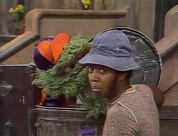 SCENE 4 | Oscar asks David to help him put a number 5 on the back of his racing jacket, because he’s entering the Trash Can Derby today. Oscar thinks 5 is his lucky number, because his alarm rang at 5:00 today, his phone rang 5 times during his mud bath, he broke 5 rotten eggs, and 5 people dropped trash on his head. The race takes place inside Oscar's trash can, and instead of cars, the Grouches race with elephants. David watches in excitement as the race announcer (Jerry Nelson) gives color commentary. At the climax of the race, Oscar comes in 5th place. |