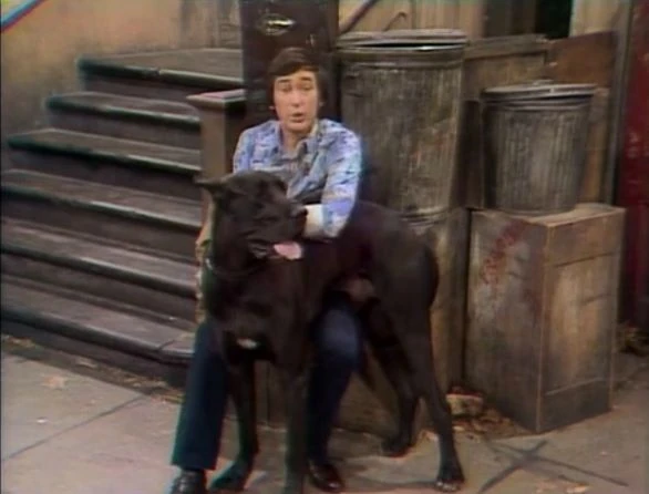 Muppets | Monsters, including the puppet who would become Grover, Flute-Snatcher, Cookie Monster, Beautiful Day Monster, and Scudge, are looking at something. Billy appears, and is reprimanded with "Eyy!" After a few times, Fred's son turns toward the viewer and yells "A!", revealing that the group is staring at the letter A. (First: Episode 0083) |