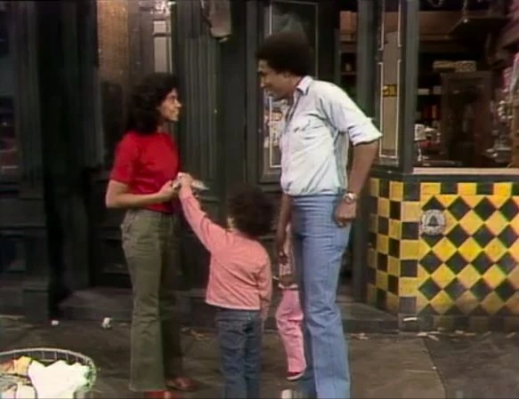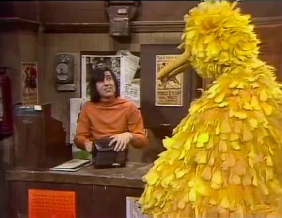 SCENE 1 cont'd | Big Bird pays a visit to the Fix-it Shop, where Luis loans him five dollars. The money eventually makes its way through each person in reverse order to Maria, who gives it back to Luis. Everybody passes on the message that they owe someone five dollars, causing Luis to give the camera a look of realization. |
