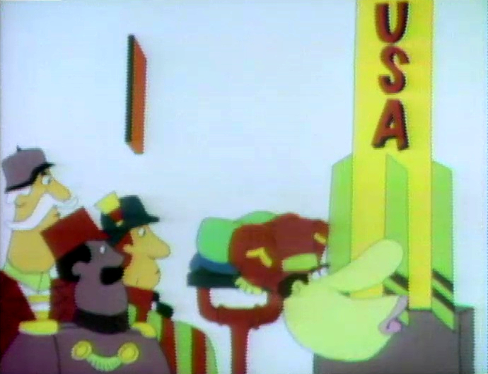 Cartoon | A Gary Owens-voiced man attempts to discuss the letter I, but is jeered by an offscreen voice. The man uses him as an example of the word "impolite". (First: Episode 0032) |